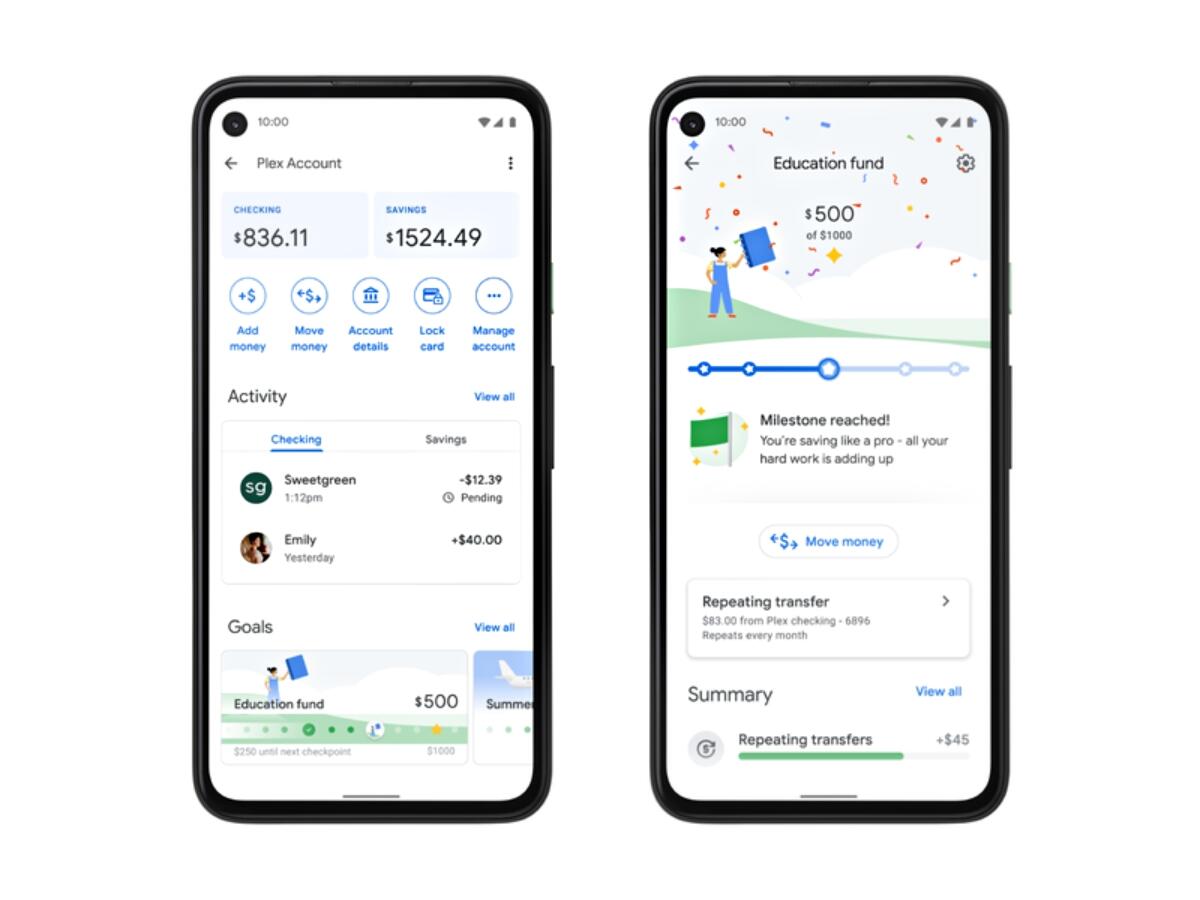 That’s why we’re working with trusted financial institutions to create Plex, a new mobile-first bank account integrated into Google Pay. Plex Accounts are offered by banks and credit unions, include checking and savings accounts with no monthly fees, overdraft charges or minimum balance requirements and help you save toward your goals more easily.