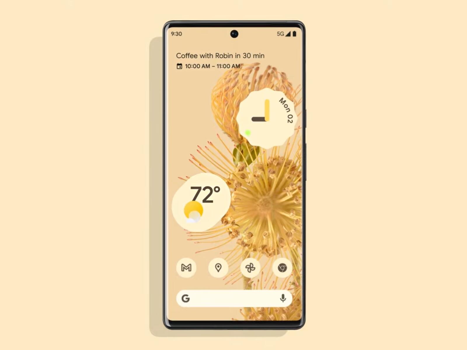 Google hat uns außerdem auch gezeigt, wie Android 12 mit Material You auf dem Pixel 6 aussieht und im Video sieht man auch noch die Front. Es gibt ein Loch in der Mitte und allgemein wurden Android und Pixel zusammen entwickelt.