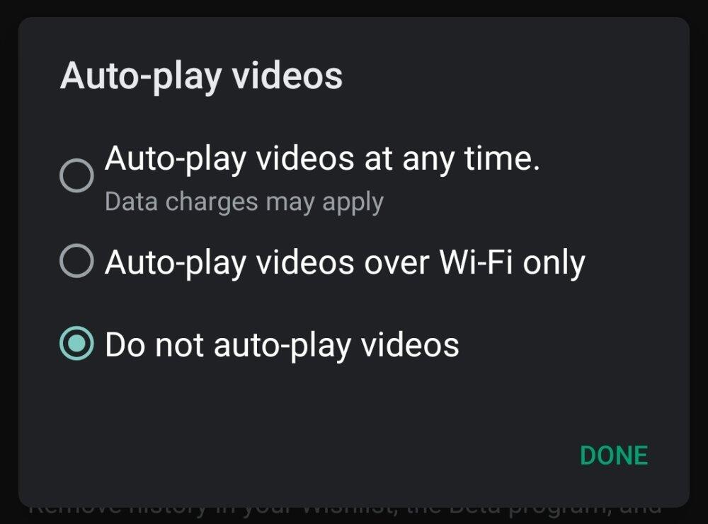 Allerdings scheint man nun eine Option in den Einstellungen zu verteilen, mit der man die Auto-Play-Videos deaktivieren kann. Google bietet genau genommen drei Optionen: Immer an, nur im WLAN an und komplett aus. Die ersten beiden Optionen bieten die meisten, die letzte Option ist ein löblicher Schritt.