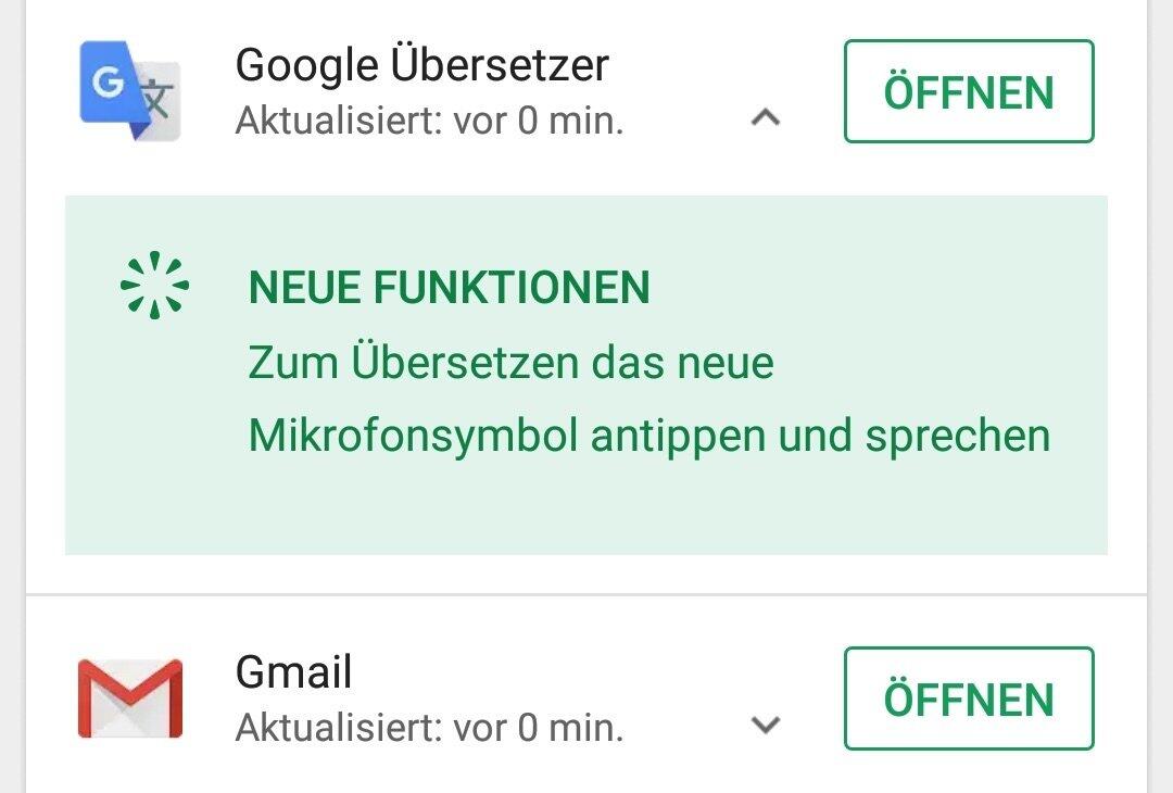 Diese Funktion scheint derzeit aber kaputt zu sein, denn in der neuen Version kann man zwar den Pfeil anklicken, aber es wird leider kein Menü mit Changelog angezeigt. Ein Fehler, der recht offensichtlich ist und ich gehe davon aus, dass Google zügig eine neue Version nachreicht, welche diesen behebt.