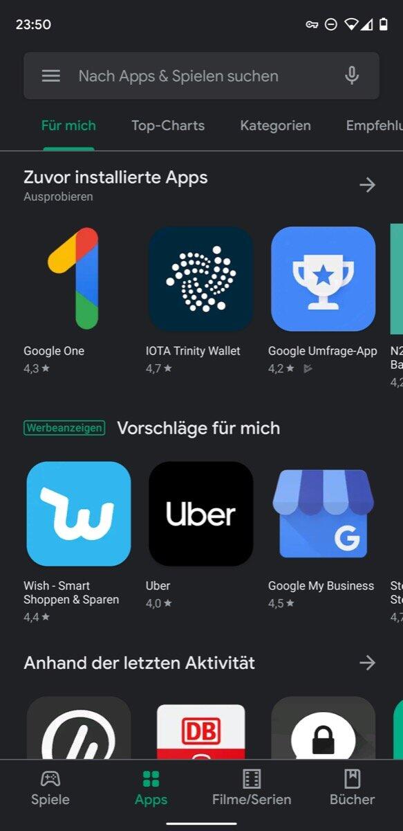 Es gibt erste Nutzer, die über einen Dark Mode in Version 16.7.21 des Google Play Store berichten und wie sich das gehört, passt sich die App bei Android 10 der Oberfläche an, die ihr gewählt habt. Heißt: Der Google Play Store wählt die Optik, die ihr bei Android 10 nutzt und ist dunkel bei einem aktiven Dark Mode.