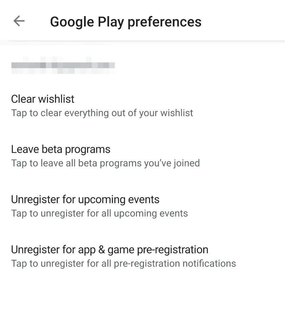 Wie ihr auf dem Screenshot weiter unten sehen könnt, kann man dort mit einem Klick die Wunschliste löschen, alle Beta-Programme verlassen, sich von kommenden Events abmelden und die Vorab-Anmeldung von Apps entfernen. Alle vier Punkte sind in diesem Menüpunkt zusammengefasst, an sich aber nicht neu.
