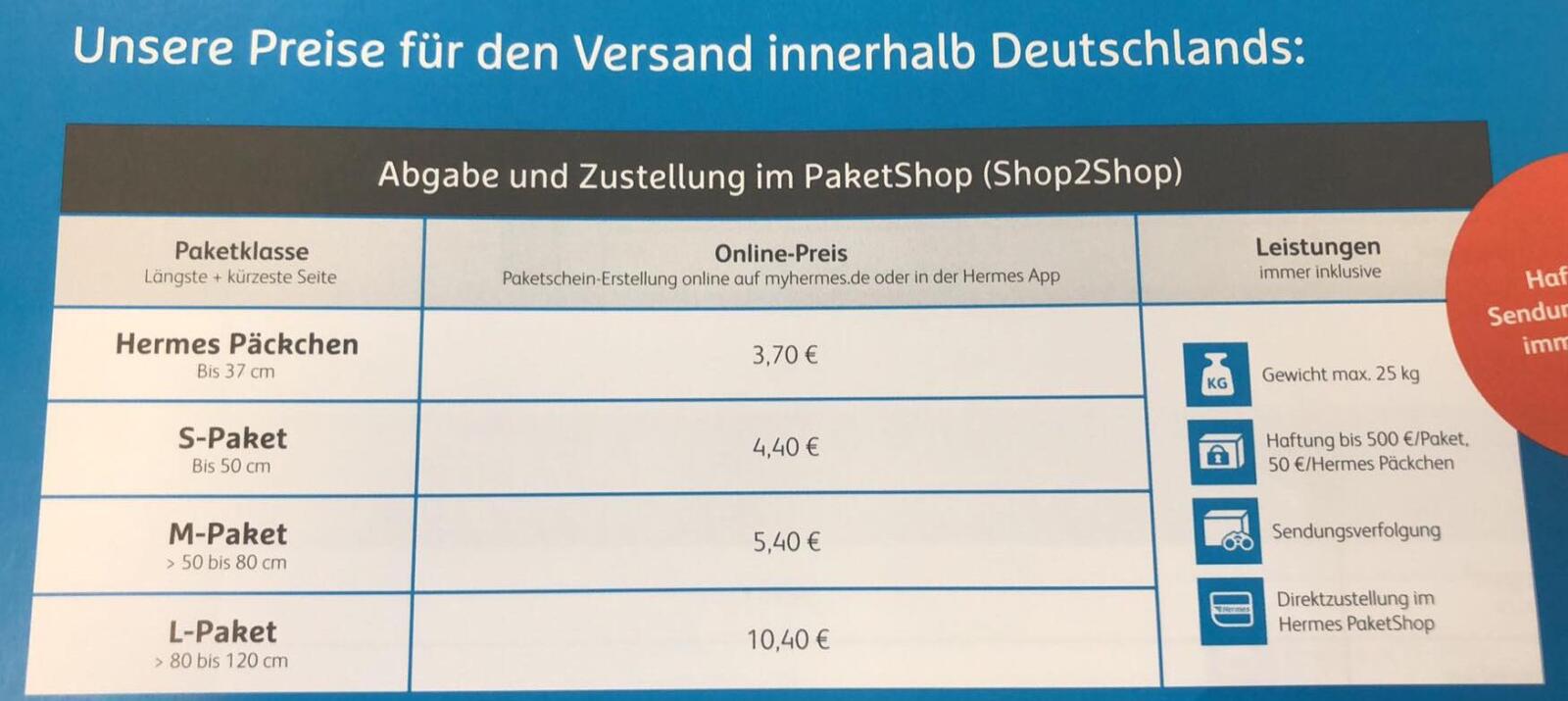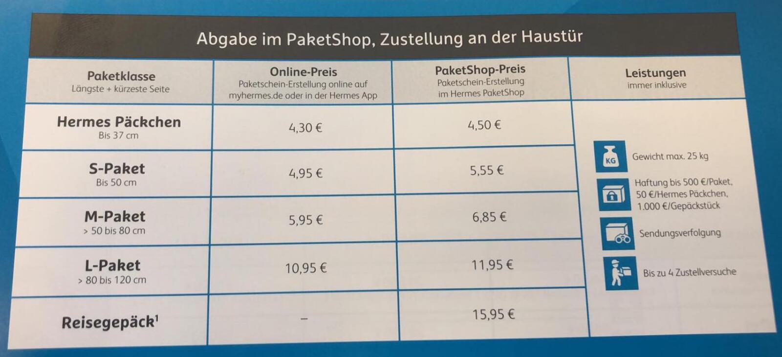 Alle neuen Hermes-Preise könnt ihr den nachfolgenden Bildern entnehmen. Es handelt sich dabei um offizielle Preislisten, welchen den Paketshops im Rahmen der Vorbereitung auf die Preisumstellung zugänglich gemacht wurden.