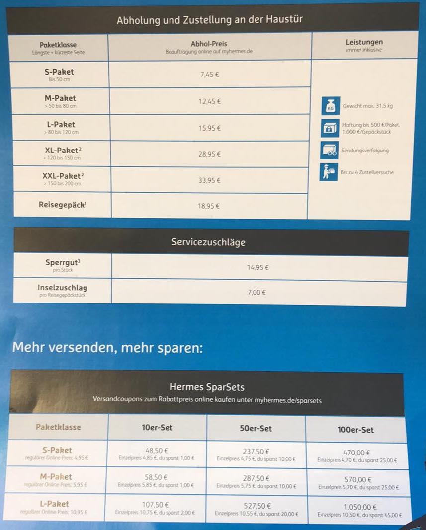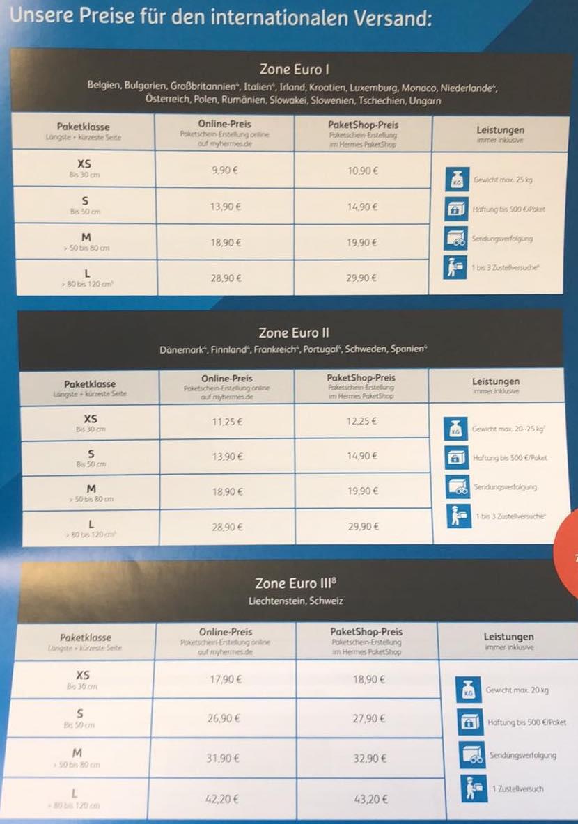 Wir hatten euch bereits kürzlich informiert, dass uns zugetragen wurde, dass Hermes ab dem 1. Februar 2019 neue Preise aufrufen wird. Heute nun können wir euch exklusiv die finalen Preislisten präsentierten. Diese Umstellung passt zu der Ankündigung, dass die Haustür-Lieferung bei Hermes zukünftig teurer werden soll.