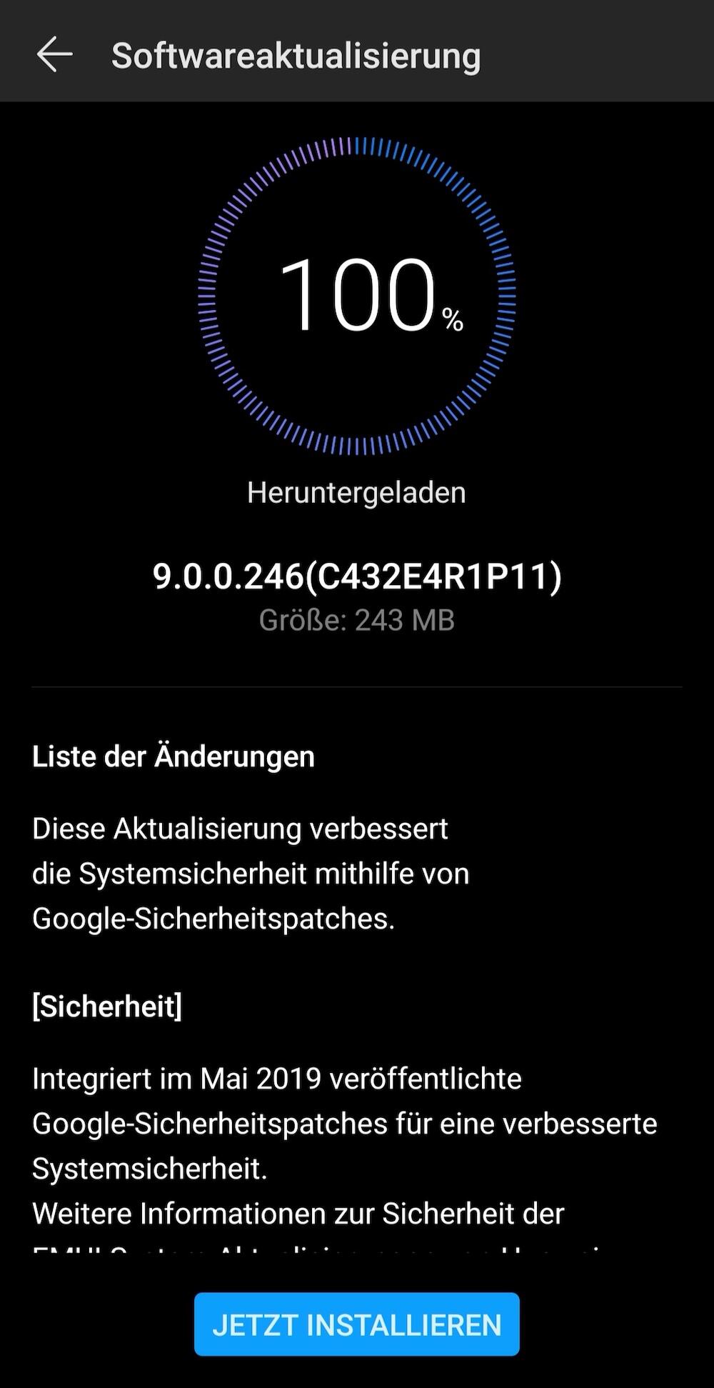 Neben dem Mate 10 Lite wird auch das Mate 10 Pro versorgt und unser Leser Sascha hat uns auch einen Screenshot von Version 9.0.0.246 (C432E4R1P11) zukommen lassen, danke dafür. Doch auch bei diesem Update tut sich nichts und wir bekommen nur den aktuellen Sicherheitspatch von Mai spendiert.
