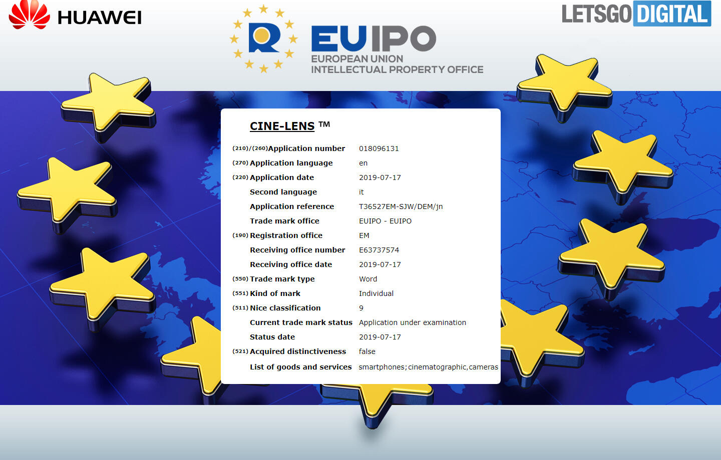 Der Patentantrag für Cine-Lens wurde am 17. Juli beim EUIPO (European Union Intellectual Property Office) eingereicht und anhand des Namens würde ich mal auf einen optimierten Videomodus tippen. Videos sind weiterhin die große Schwäche von Huawei, da darf sich in diesem Jahr gerne etwas tun.