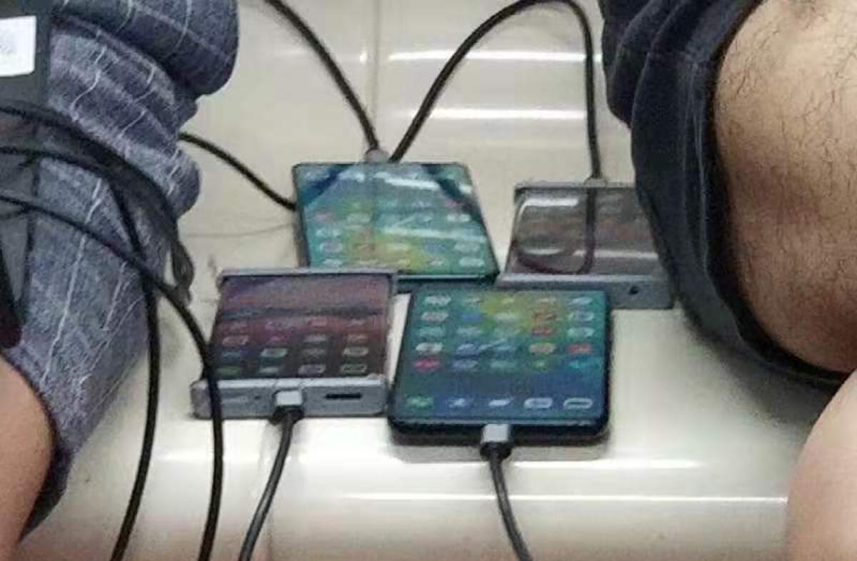 Viel erkennt man auf den Bildern leider nicht, da Hüllen genutzt wurden, die das Design verbergen. Sieht aber so aus, als würde man die Modelle testen, alle Geräte vor Ort sind auch mit einem Laptop verbunden. Vielleicht sowas wie ein erster Feldtest, bei dem man die Mobilfunkverbindung im Alltag überprüft.