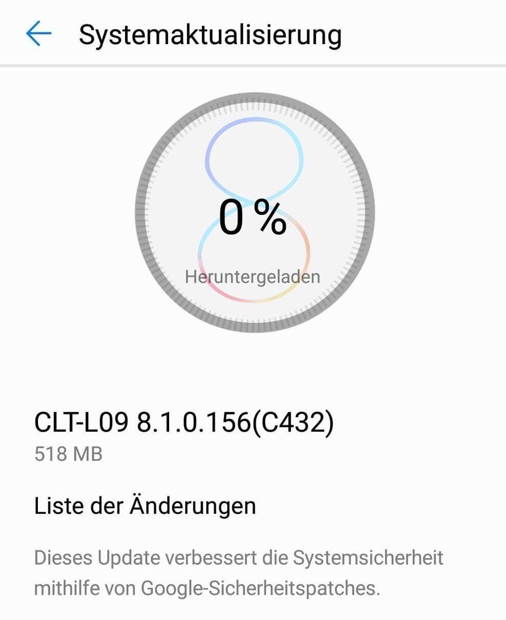 Für das Huawei P20 Pro wird aktuell ein Update auf Version CLT-L09 8.1.0.156(C432) verteilt, welches keine Neuerungen oder Änderungen beinhaltet, dafür aber den aktuellen Sicherheitspatch von Google mitbringt. Es ist der Patch von August.