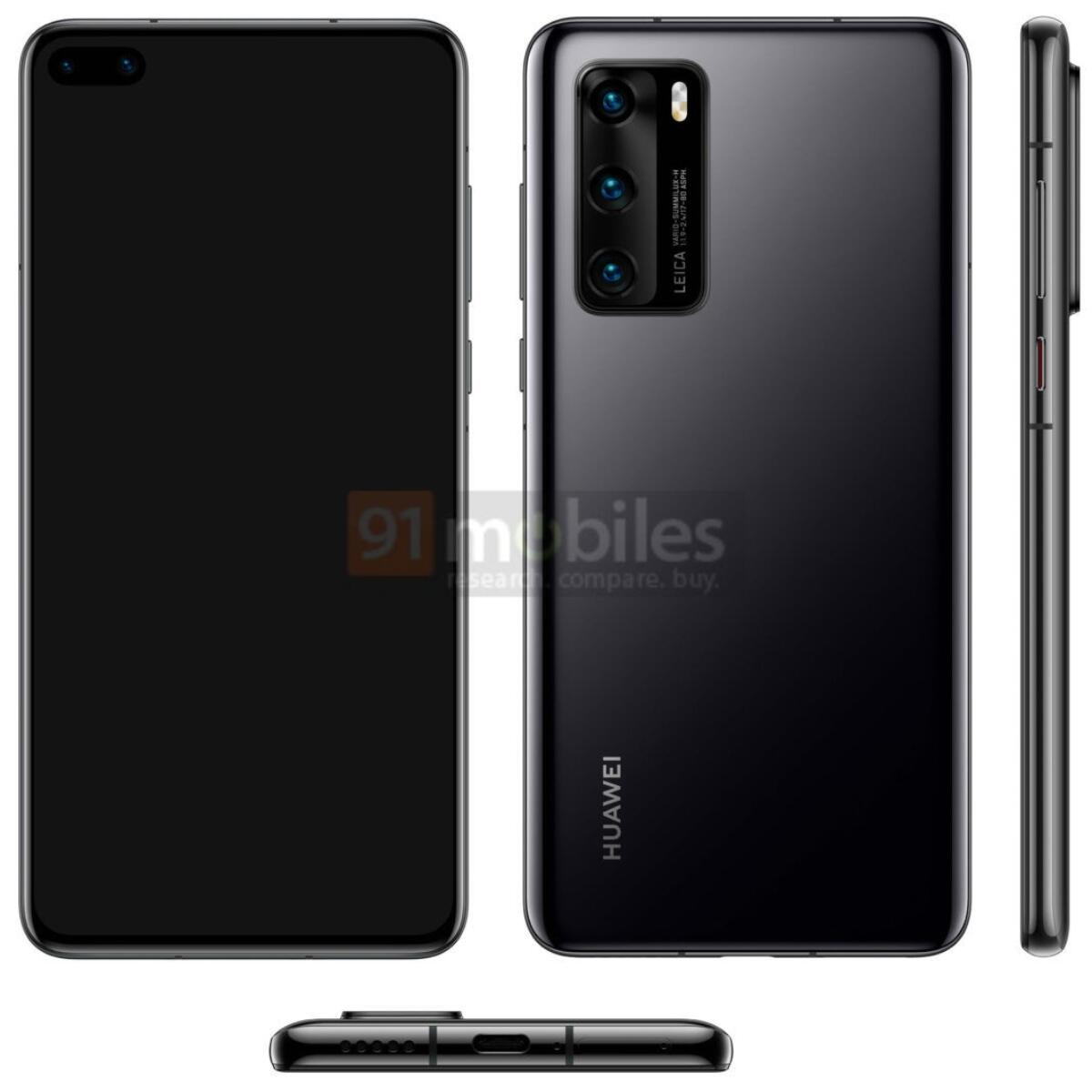 Sollte das Bild echt sein, dann erwartet uns beim normalen P40 eine Leica-Triple-Kamera und statt einer Notch bekommen wir ein Loch im Display, in dem sich auf der Front zwei Kameras befinden. Das Pro-Modell soll übrigens ebenfalls mit Loch auf den Markt kommen, das P30 Pro besitzt eine Notch.
