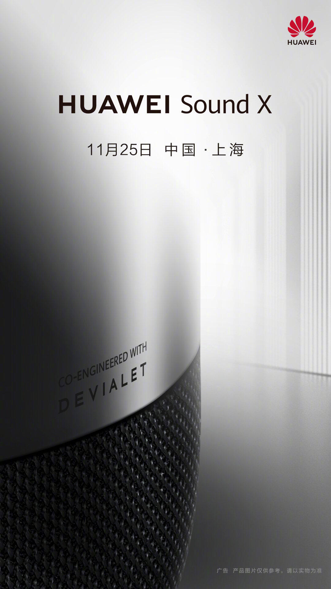 Zum Start in die neue Woche gab es hier einen Leak von einem smarten Speaker namens Huawei Sound X und mittlerweile hat das Unternehmen diesen bestätigt. Der smarte Lautsprecher wurde zusammen mit Devialet entwickelt, wiegt knapp 3,5 Kilogramm und wird kommende Woche am 25. November vorgestellt.