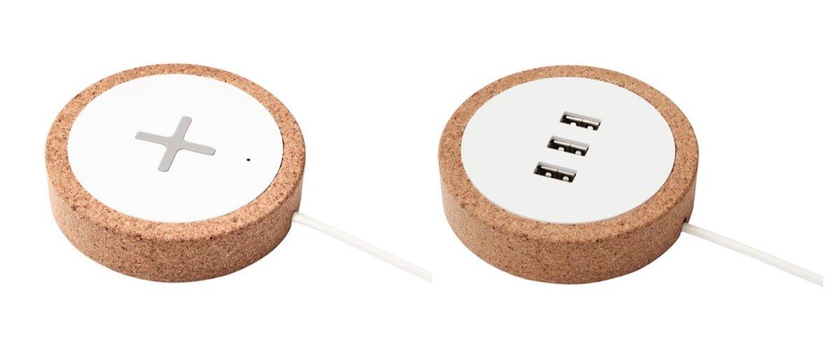 IKEA bewirbt außerdem die zwei Lademöglichkeiten der NORDMÄRKE-Reihe. Es gibt einmal eine kabellose Version und dann noch eine mit 3 USB-Anschlüssen. Beide kann man in die Möbel integrieren oder mit Kork verziert auf den Tisch stellen. Die USB-Version kostet 14,99 Euro, die Qi-Version kostet 19,99 Euro.