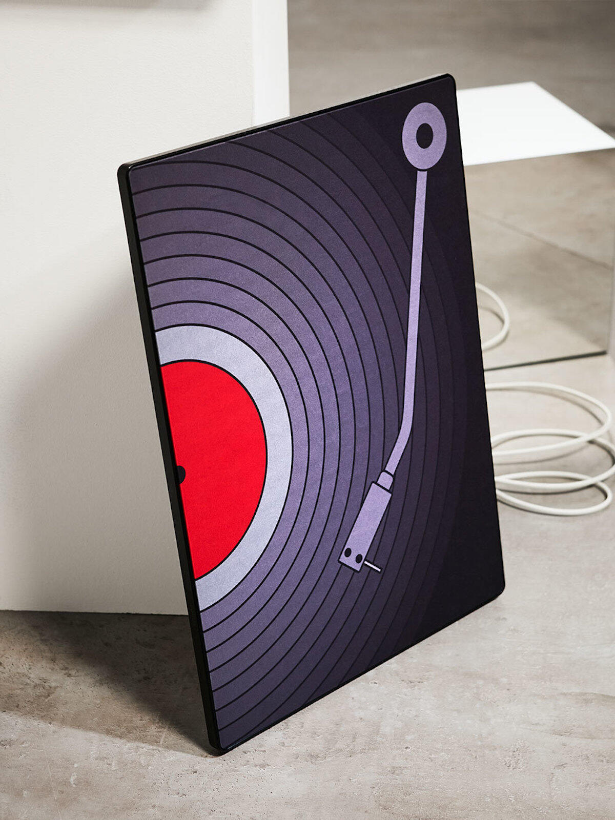 Den neuen Rahmen mit Speaker gibt es in Schwarz und Weiß und die Front kann ausgetauscht werden. Die Standardfront könnt ihr auf dem Beitragsbild sehen und weitere Versionen weiter unten (das Portfolio wird wohl auch ständig wachsen).