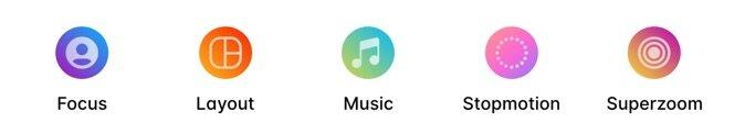 Wie ihr schon seht, ist dort ein Eintrag, den wir bisher nicht kennen: Layout. Das wird eine neue Option sein. Außerdem hat man den Boomerang überarbeitet und bietet dort demnächst sechs Modi an. Eine neue Option für einen Boomerang ist zum Beispiel eine Slow-Motion-Aufnahme oder eine kurze Pause am Ende.