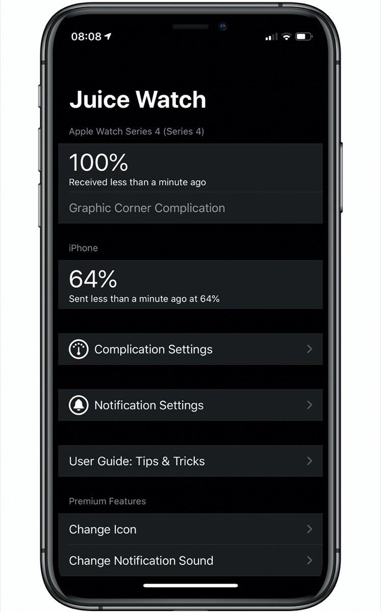 Juice Watch: Batteriestand von iPhone und Apple Watch im Blick