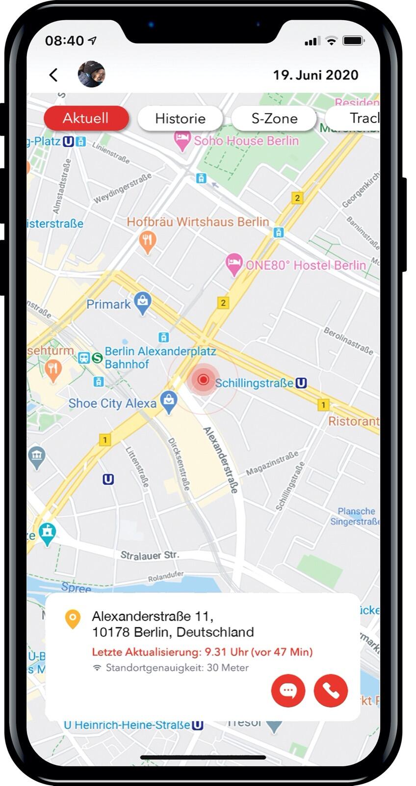Dank GPS-Funktion sehen die Eltern in der App der Smartwatch den Aufenthaltsort ihres Kindes in Echtzeit. Zudem können sie sichere Bereiche – wie beispielsweise die eigene Wohnsiedlung – festlegen. Verlässt das Kind diesen Bereich, erhalten die Eltern eine Information. Sind mehrere Bereiche als solche definiert, kann so auch das Ankommen festgestellt werden.