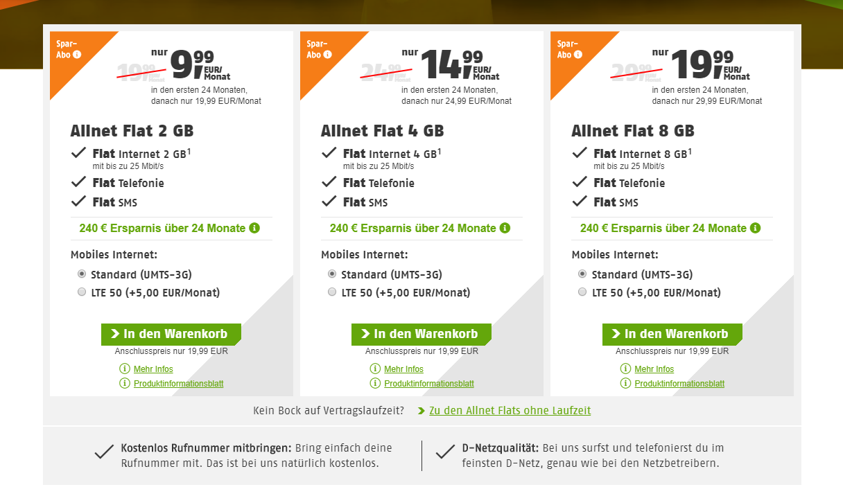 Klarmobil: 24 Monate Allnet-Flat 10 Euro pro Monat günstiger