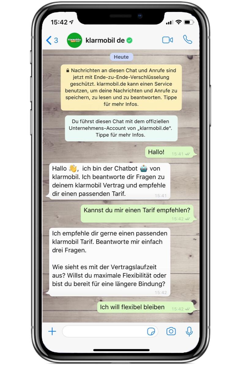 Der Mobilfunkdiscounter klarmobil.de stellt seinen Kunden ab sofort einen Messenger-Bot für WhatsApp zur Verfügung. Die „meisten“ Kundenanfragen können laut des Providers somit automatisiert und damit innerhalb von Sekunden beantwortet werden.