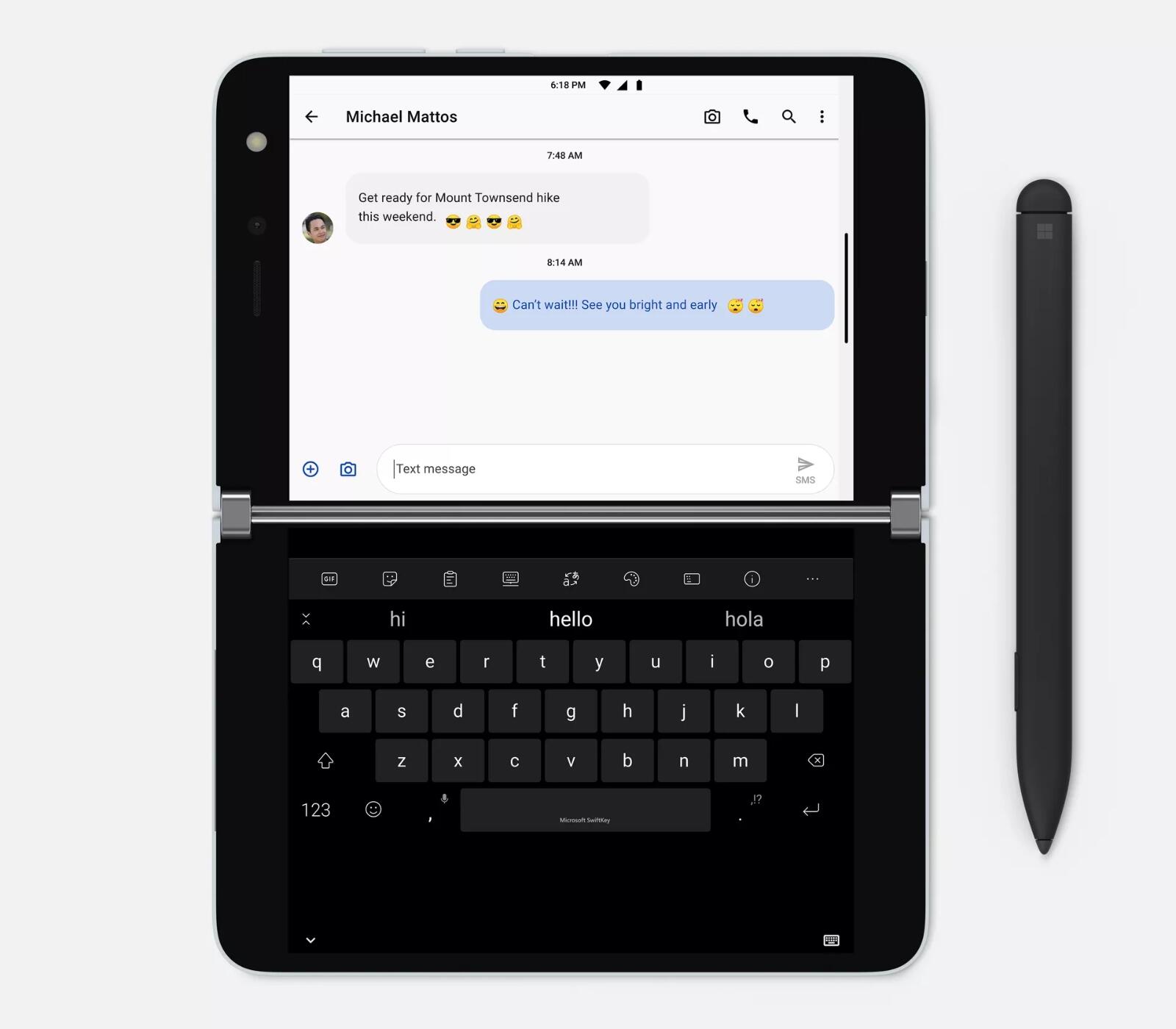 Im Fokus stehen zwei 5,6 Zoll großes OLED-Displays (1800 x 1350 Pixel), die zusammen auf 8,1 Zoll (2700 x 1800 Pixel) kommen. Bedenkt, dass sich hier auch das Seitenverhältnis ändert. Und da es kein flexibles Display ist, hat sich Microsoft für einen Schutz mit Gorilla Glass entschieden, der Kratzer vermeiden soll.