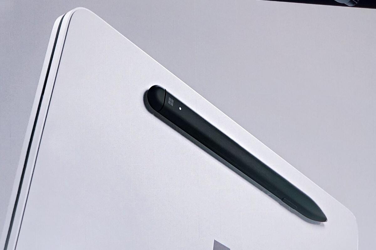 Viele Details gibt es nicht, aber ein paar hat man genannt: Es besitzt das dünnste LC-Display, welches jemals produziert wurde, wiegt 655 Gramm, ist 5,6 mm dick, kommt mit einem Stift, den man hinten anheften und laden kann und die beiden Displays sind jeweils 9 Zoll groß (es wirkt eigentlich etwas kompakter).
