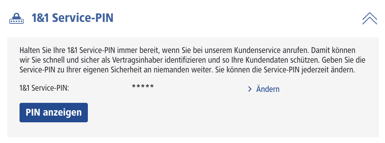 1&1 Service PIN eingeführt