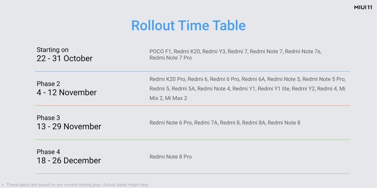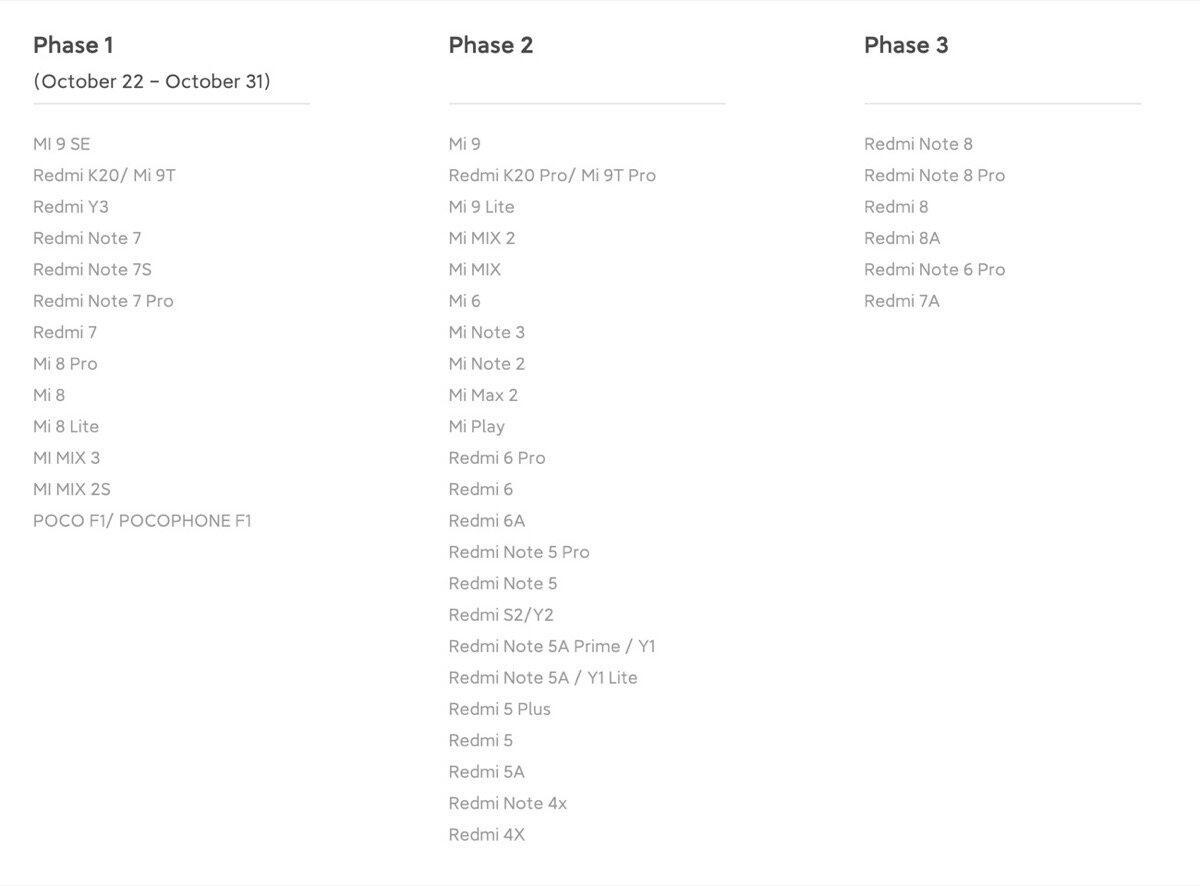 Es gibt jedoch noch ein paar Ungereimtheiten, denn über Twitter hat man die folgende Timeline mit vier Phasen geteilt. Los geht es am 22. Oktober und bis Weihnachten sollen die meisten Geräte von Xiaomi versorgt werden: