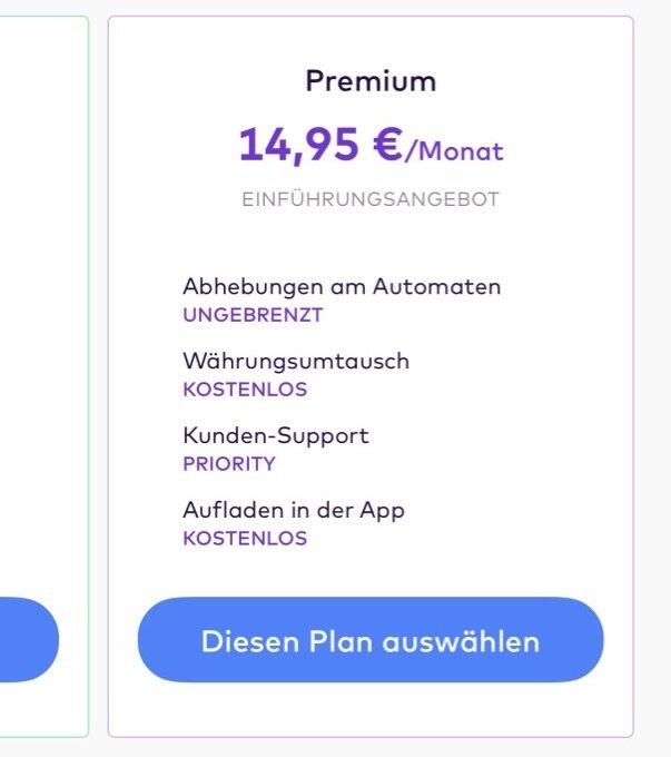 Neben dem Plus-Konto für 4,95 Euro pro Monat gibt es nun also auch ein Premium-Konto für knackige 14,95 Euro monatlich. Damit können Kunden dann u.a. unbegrenzt kostenfrei Bargeld beziehen. Alle Leistungen könnt ihr nachfolgenden Screens entnehmen.