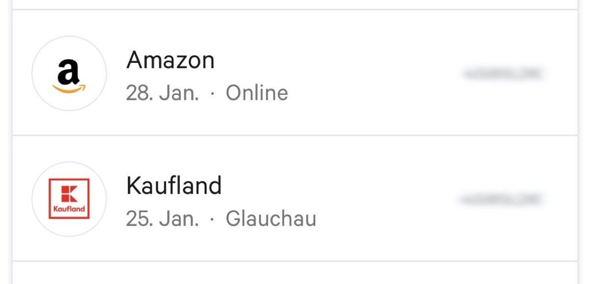 Es ist hier nun der Ort einer Zahlung zu sehen. Bei Amazon oder Lieferando steht da nur „Online“ und bei Lidl, Kaufland und Co. der konkrete Ort der jeweiligen Filiale. Auf nachfolgendem Screenshot seht ihr das beispielhaft.