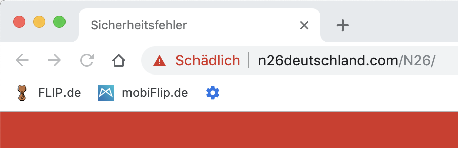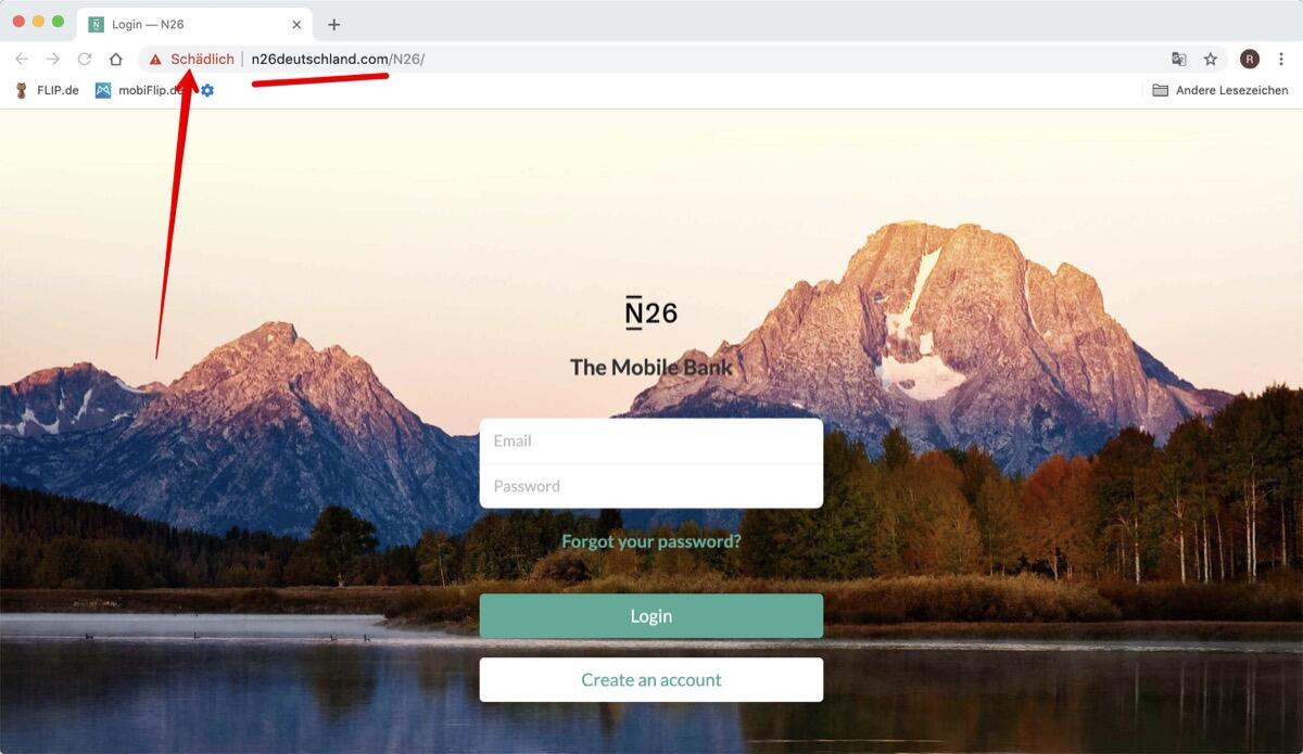 Auffällig ist zudem, dass der Nutzer in der E-Mail mit Sie angesprochen wird. Dabei spricht N26 seine Kunden stets mit Du an. Die Zielseite, die weiterhin online ist, ist jedenfalls ein Nachbau der N26-Website. Sie dient dazu, die Logindaten der Nutzer zu erhalten.
