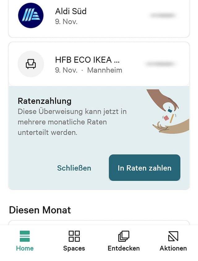Erste Nutzer der Bank N26 sehen aktuell direkt in der „Timeline“ der App das Angebot für eine Ratenzahlung für bestimmte Kartenzahlungen. Das Ganze wird direkt von N26 angeboten und greift offenbar bei Einkäufen, die einen bestimmten Betrag übersteigen. Wie hoch dieser Betrag mindestens sein muss, ist allerdings unklar.