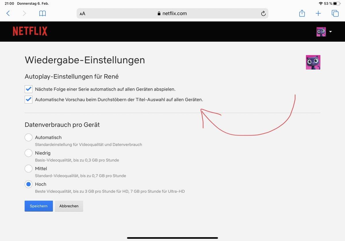Die neue Option wird bereits im Netflix-Hilfebereich erwähnt. Sie ist im persönlichen Netflix-Profil unter den Wiedergabe-Einstellungen zu finden.