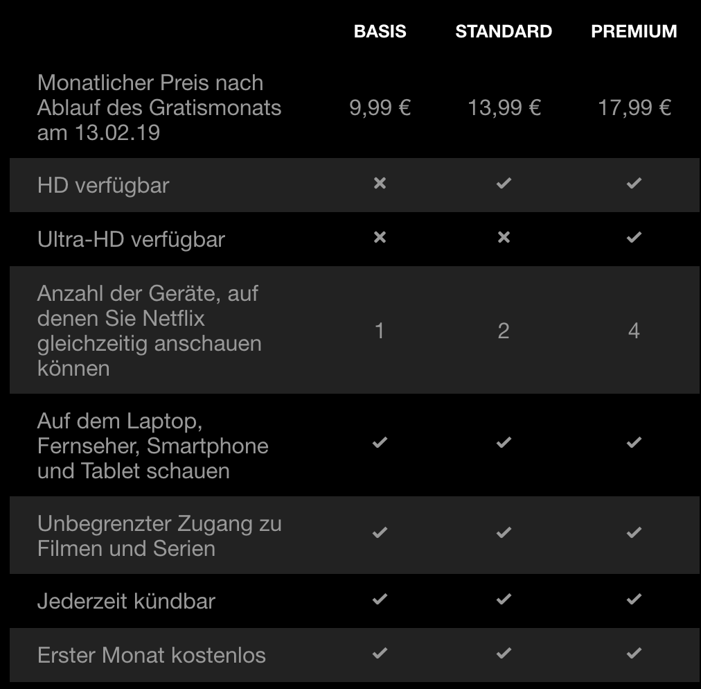 Neukunden von Netflix dürften aktuell einen erstaunten Blick auf die Preisliste geworfen haben. Ganze 17,99 Euro möchte das Unternehmen derzeit für das größte Abo haben. 13,99 Euro werden für das Standard-Abo fällig und 9,99 Euro sollen es für das Basis-Abo sein.