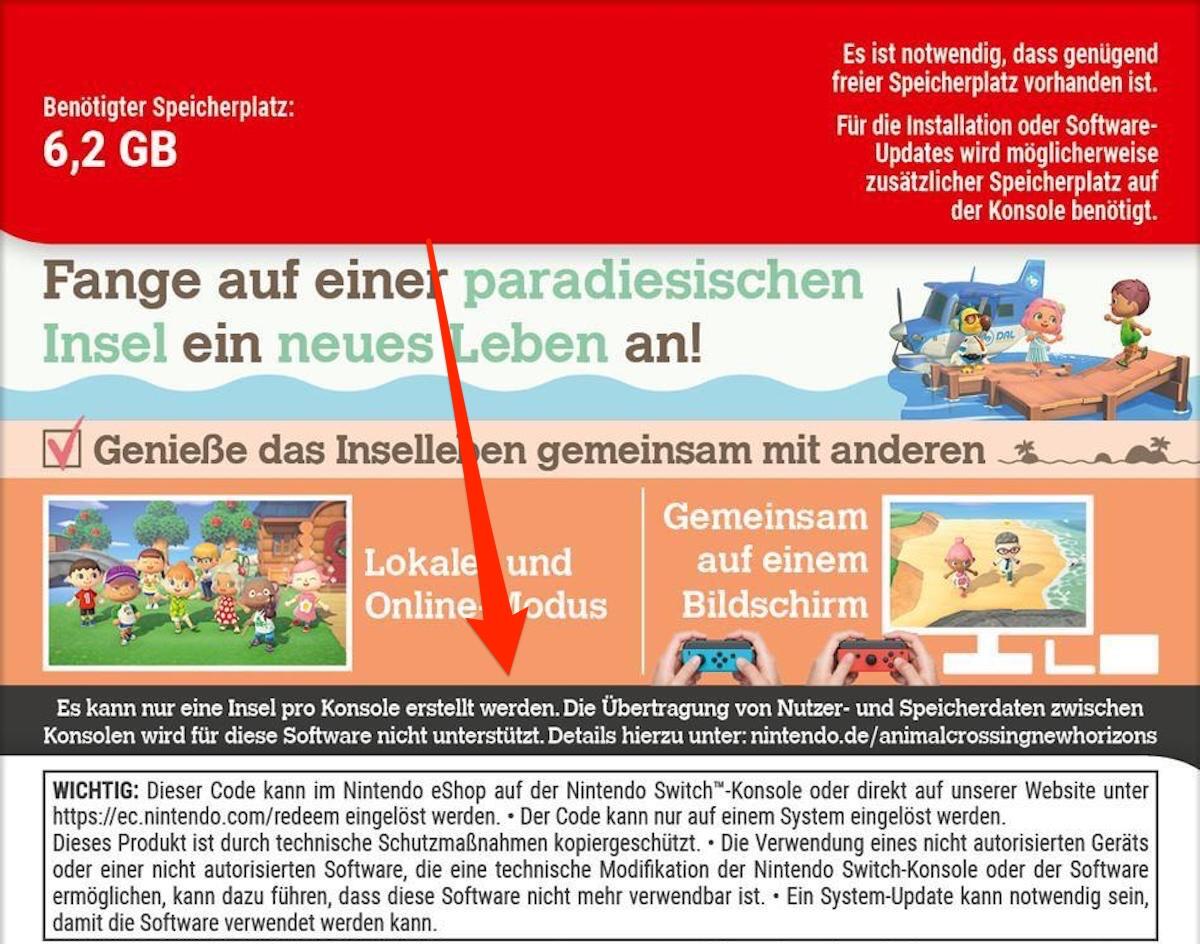 Nun kommt der nächste große Titel auf den Markt, bei dem man seine Daten auch nicht online sichern kann: Animal Crossing. Bei Reddit ist die Rückseite der Box (zufällig auf Deutsch) aufgetaucht und dort ist es ganz klar zu lesen:
