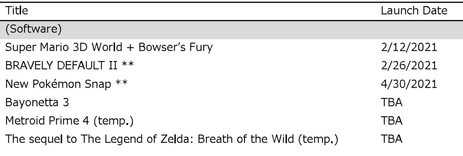 Ich bin mal gespannt, wie das Lineup für 2021 aussieht, denn bisher ist das noch recht mager (und sogar schwächer als 2020). So sieht das laut Nintendo aus: