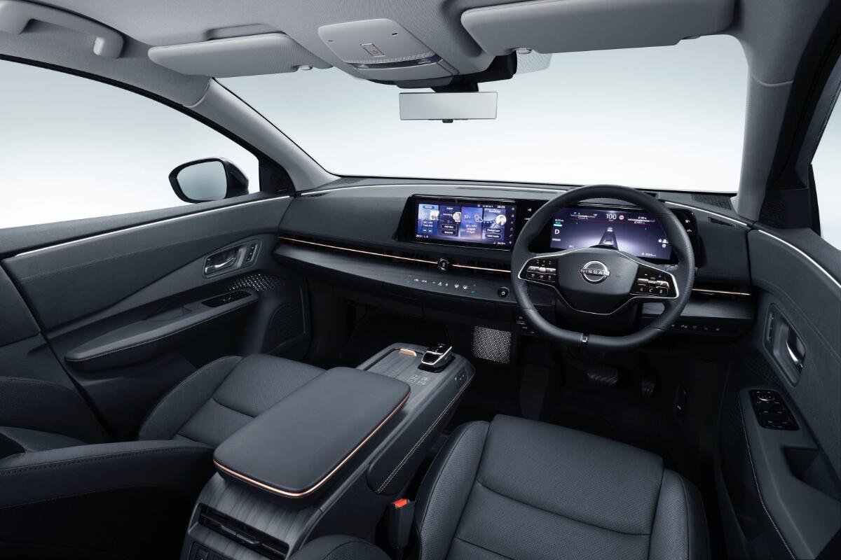 Im Innenraum gibt es ein 12,3 Zoll großes und sehr breites Display und der Nissan Ariya unterstützt die kabellose Version von Apple CarPlay und Android Auto. Und natürlich hat man eine Qi-Ladeplatte in der Mittelkonsole vom Auto verbaut. Bei den Fahrassistenzsystemen wird es eine neue Version von ProPilot geben.