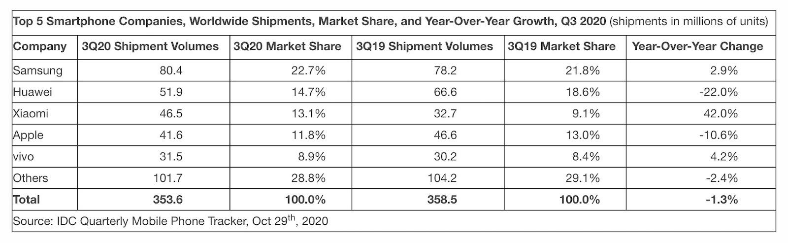 Der Erfolg scheint aber nicht von Dauer, denn nach nur einem Quartal musste Huawei die Krone laut IDC schon wieder an Samsung zurückgeben. Die sind im dritten Quartal wieder an Huawei vorbeigezogen und nun wieder die Nummer 1.