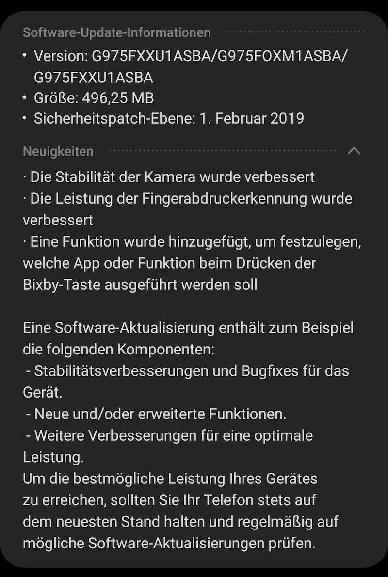 Wenn das Samsung Galaxy S10(+) kommende Woche bei euch eintrifft, dann dürfte euch direkt ein Update begegnen. Samsung hat nämlich heute damit begonnen ein Update auszuliefern, das unter anderem den Sicherheitspatch von Februar 2019 mitbringt (es war noch mit dem Januar-Update unterwegs).