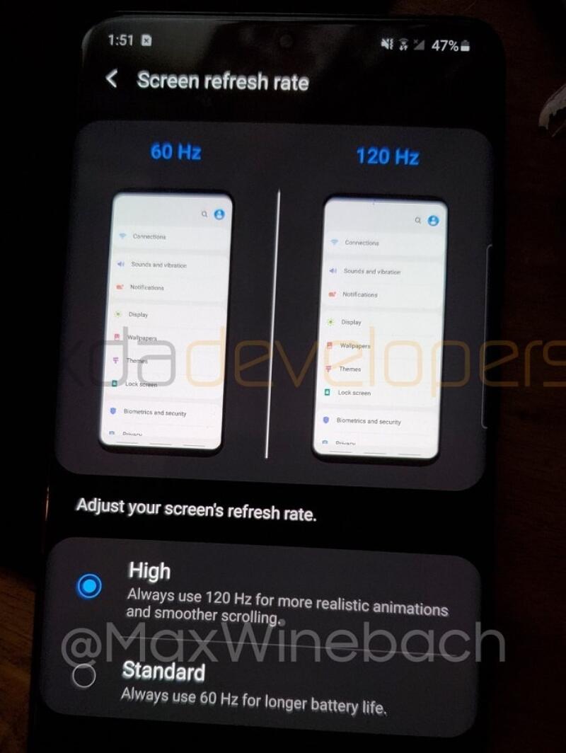 Man kann zwischen 60 Hz und 120 Hz wählen. Gestern machte jedoch noch ein Gerücht die Runde: 120 Hz sind nur mit FHD+ möglich, mit QHD+ kann man aber weiterhin nur 60 Hz nutzen. Dieses Gerücht hat man bei den XDA Developers bestätigt, wer mehr Hz möchte, der bekommt weniger Pixel.