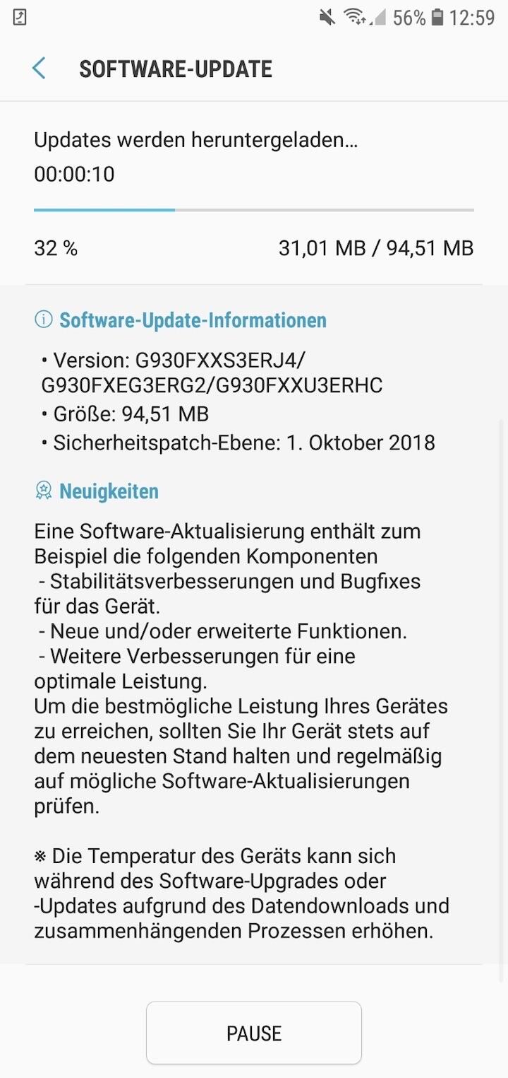 Das Update (für das S7) ist knapp 95 MB groß und wird derzeit für deutsche Modelle verteilt. Ich weiß nicht wie es mit anderen Smartphones von Samsung (oder dem S7 Edge) aussieht, schaut am besten einfach mal selbst nach.