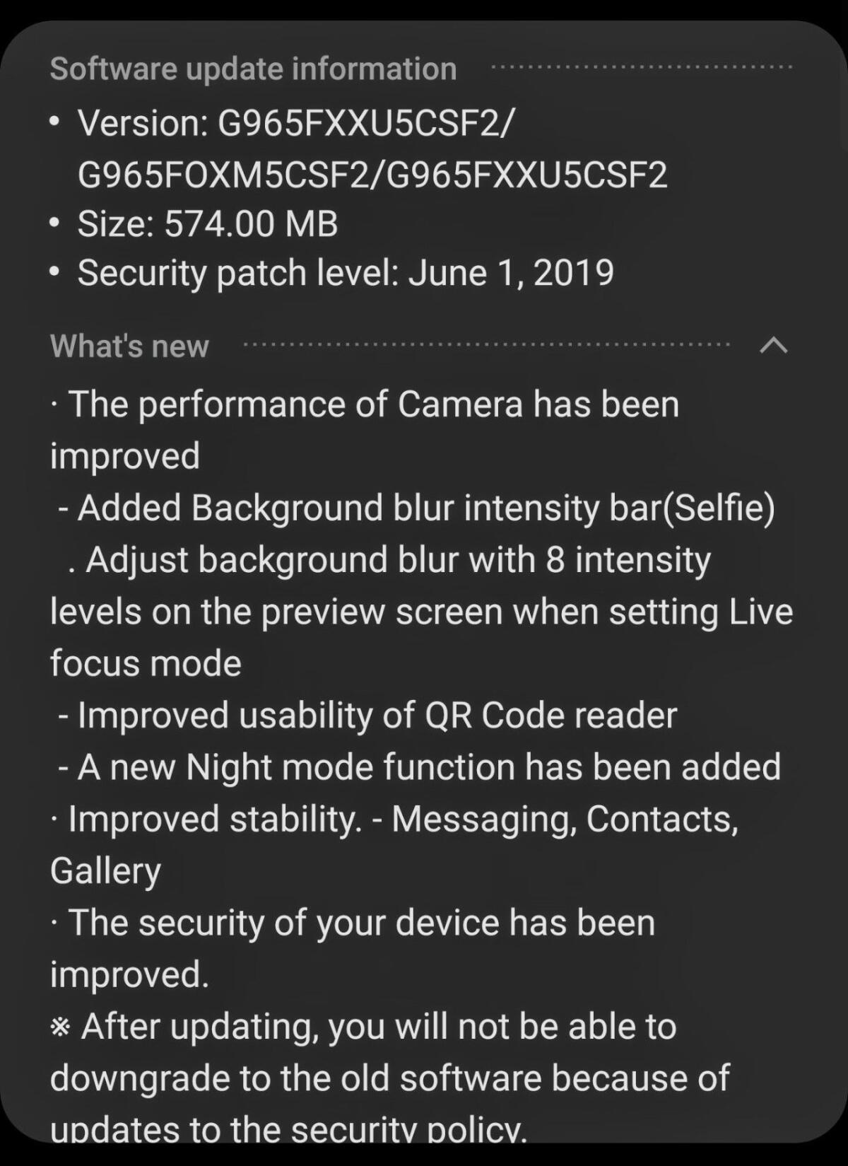 Das liegt daran, dass wir neben den üblichen Optimierungen beim System auch noch ein recht großes Update für die Kamera bekommen. Samsung spendiert dem älteren Flaggschiff auch den Nachtmodus, den man mit dem Galaxy S10 eingeführt hat. Damit hätten wir ehrlich gesagt nicht mehr beim S9 gerechnet.