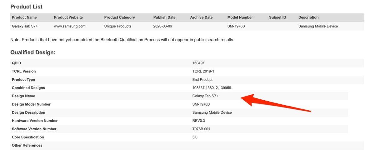 Samsung Galaxy Tab S7 bei Bluetooth SIG entdeckt