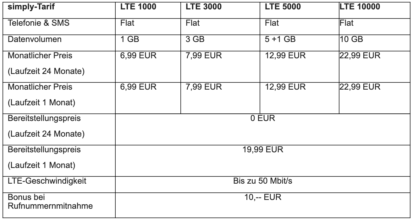 Es gibt mal wieder eine aktuelle Tarifänderung bei der Mobilfunkmarke simply. Für Neukunden steht der Tarif LTE 5000 ab sofort mit 20 Prozent zusätzlichem Datenvolumen ohne Aufpreis bereit. So beinhaltet der Tarif im Telefónica-Netz ab sofort 5 plus 1 GB sowie eine SMS und Telefon-Flatrate in alle deutschen Netze.
