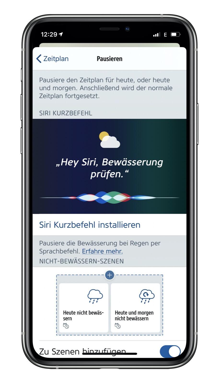 Der bereits vorkonfigurierte Kurzbefehl lässt sich über die Eve-App installieren und anschließend per Siri oder Tipp in der Kurzbefehle-App oder dem Widget in der „Heute“-Ansicht aktivieren.