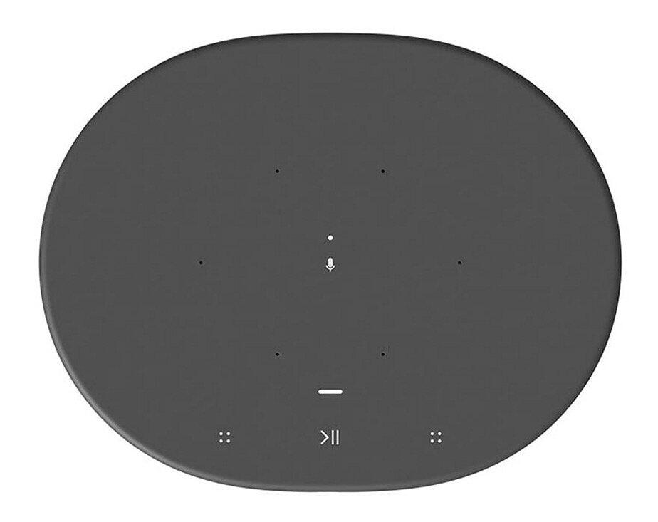 Damit man den Sonos Move bequem transportieren kann, gibt es eine kleine Einkerbung hinten und oben sieht man Löcher für 6 Mikrofone, Alexa oder den Google Assistant wird man also wohl auch hier normal benutzen können.