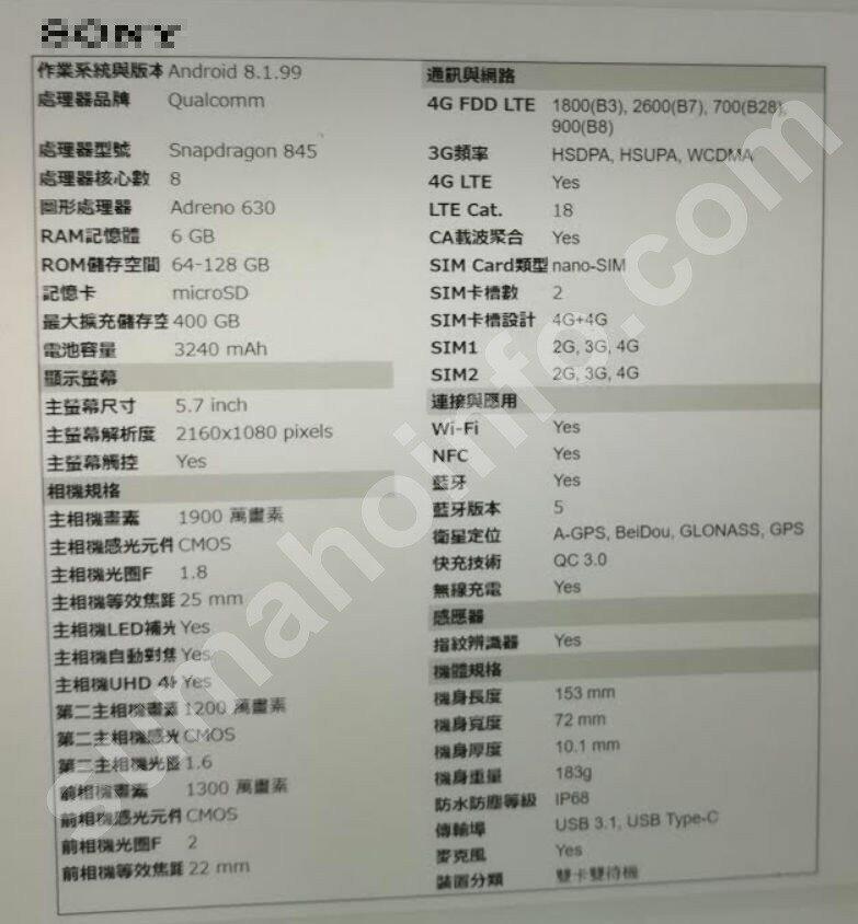 Aktuell macht ein mutmaßliches Datenblatt von Sony die Runde, welches die Specs des Xperia XZ3 verraten könnte. Das Datenblatt könnte auch leicht gefälscht sein und die Quelle ist nicht in der Szene bekannt, die Details klingen aber plausibel.