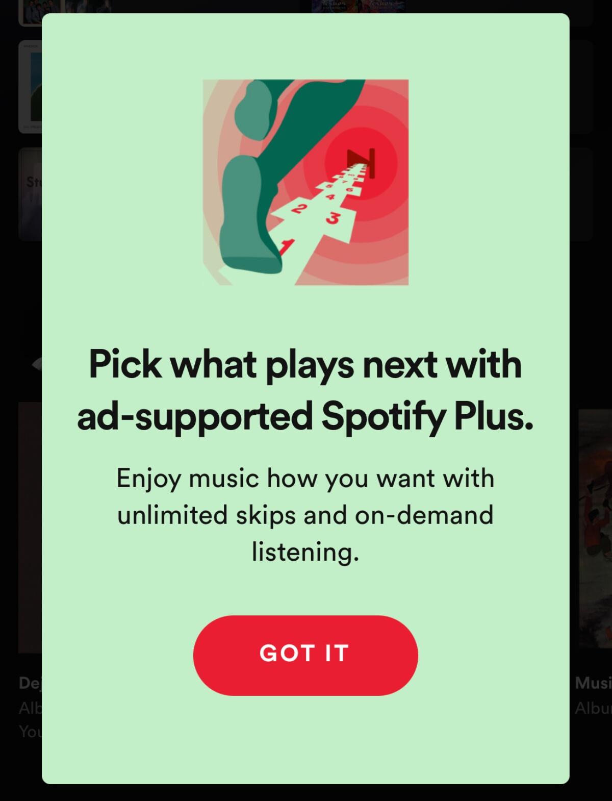 Die Werbung wird, wie auch bei „Spotify Free“ weiterhin vorhanden sein. Allerdings fällt das Limit zum Überspringen von Liedern hier weg. Plus-Nutzer können ganz normal einen Song, eine Playlist oder ein Album hören und Lieder skippen.