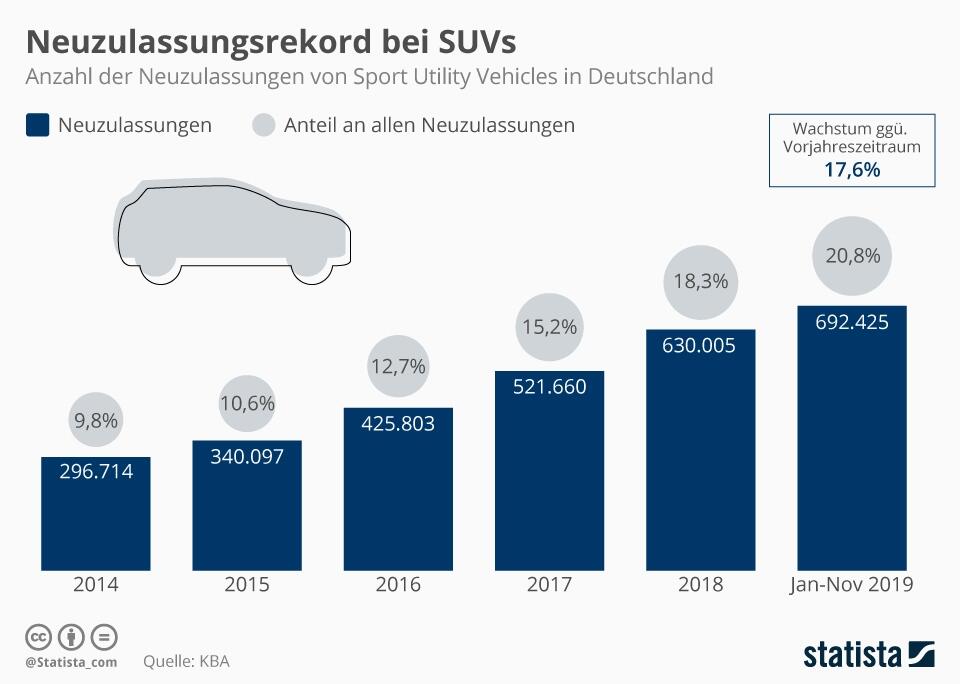 Aktuell sieht es auch nicht so aus, als ob sich das 2020 ändert und ich würde sogar mit einem weiteren Rekord im nächsten Jahr rechnen. Es würde mich nicht wundern, wenn wir 2020 die Million knacken. Wobei das Wort „SUV“ natürlich ein heiß diskutiertes Thema ist, denn was ist denn nun genau ein SUV?