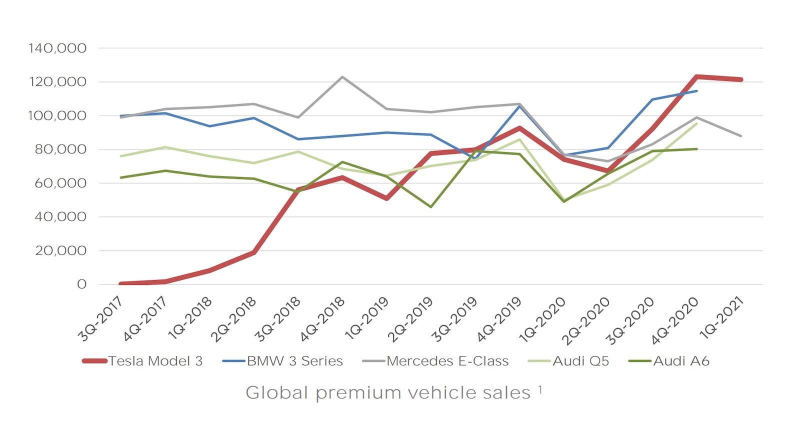 Tesla Model 3 schlägt Bestseller von BMW und Mercedes-Benz