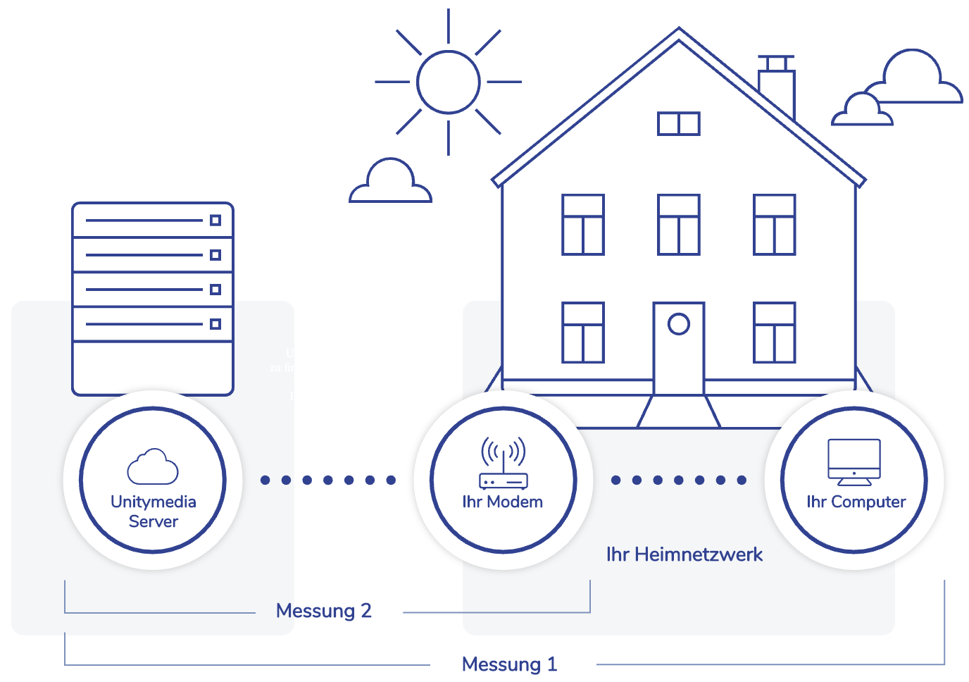 In der ersten Stufe misst der Speedtest Plus die Geschwindigkeit zwischen dem Unitymedia Server und dem Endgerät des Nutzers. Weicht das Ergebnis vom gebuchten Tarif ab, so wird der Test in der zweiten Stufe fortgeführt.