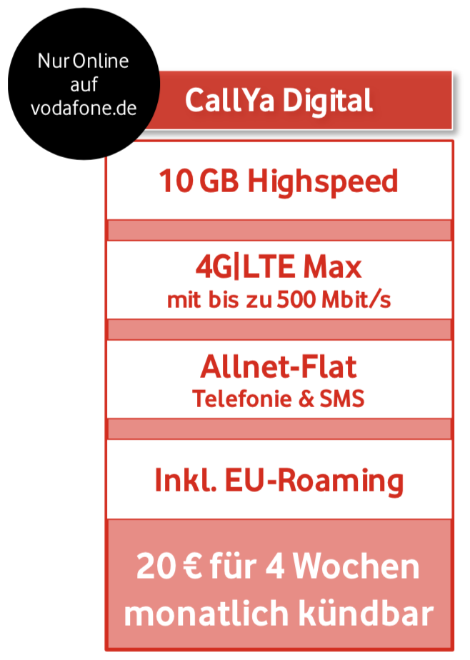 CallYa Digital: Neuer Vodafone-Tarif mit 10 GB Datenvolumen und Allnet-Flat