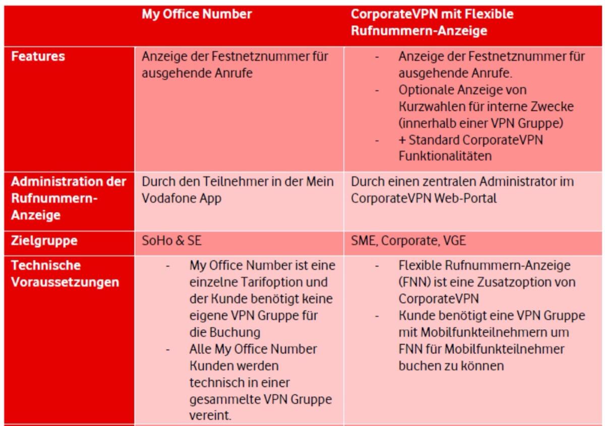 Mit dieser Angebotsoption können die Vodafone-Kunden bei ausgehenden Anrufen eine Festnetznummer statt der mobilen Nummer anzeigen lassen. Das soll unter anderem für die Standortunabhängig innerhalb Deutschlands nützlich sein,  da bei Telefonaten suggeriert wird, dass der Anrufer im Büro sitzt. Auch die Hemmschwelle für Rückrufe soll damit sinken.